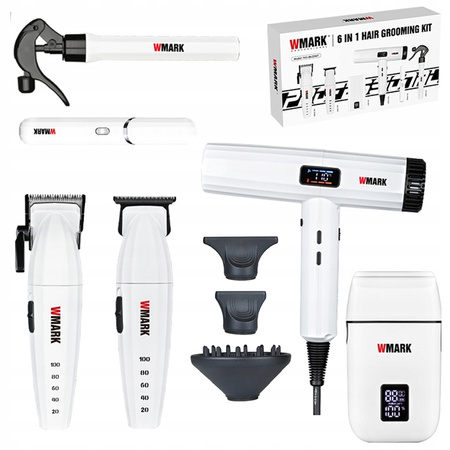 WMARK NG-8635 Zestaw Barber 6w1 Maszynka Trymer Golarka Suszarka +akcesoria